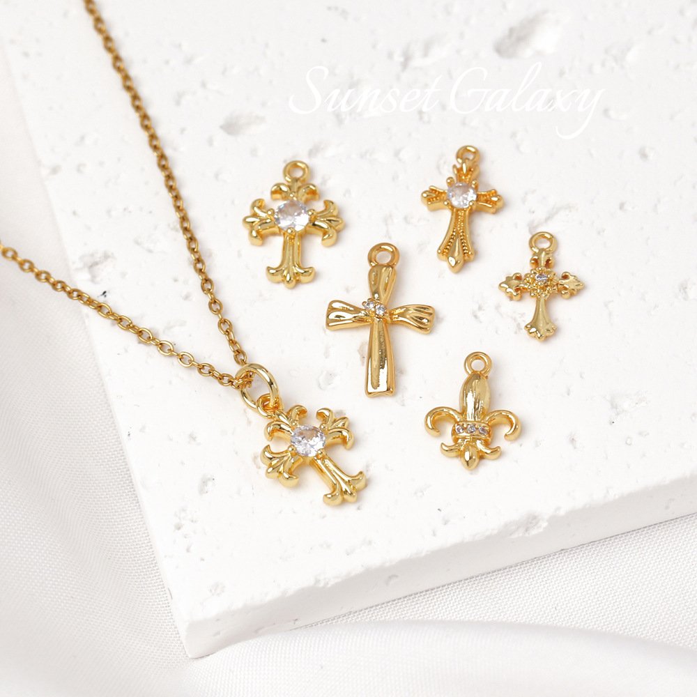 18k gold color retaining micro inlaid zircon iris cross pendant handmade DIY string necklace jewelry accessories
