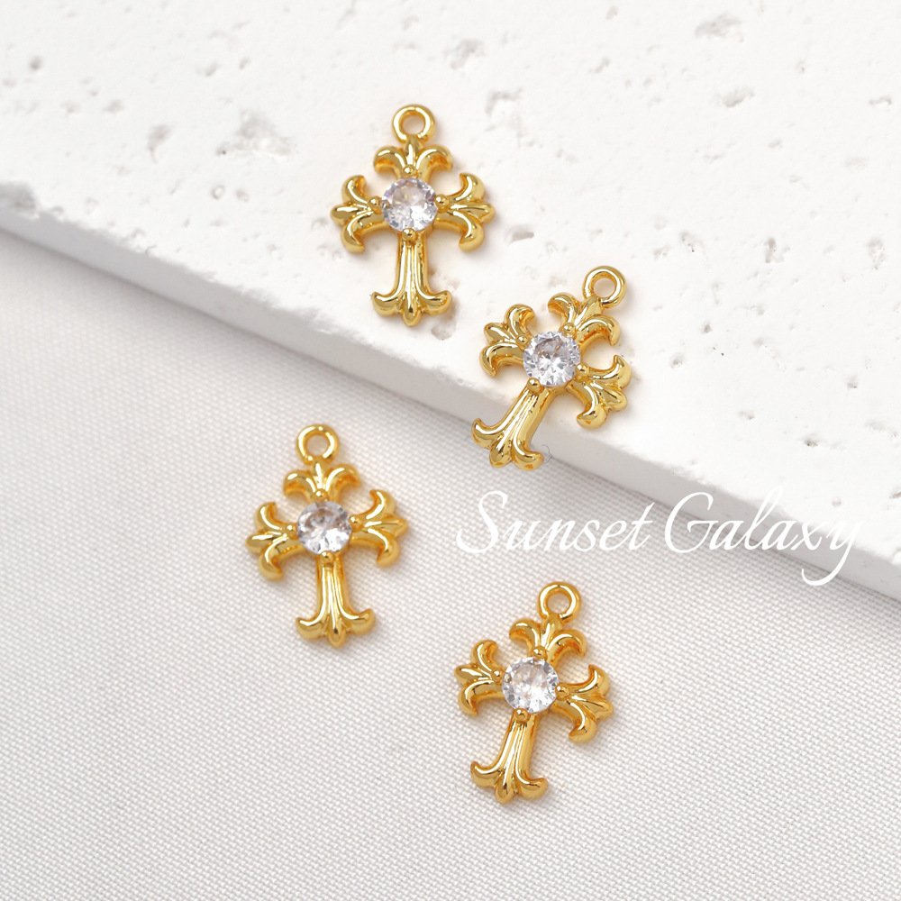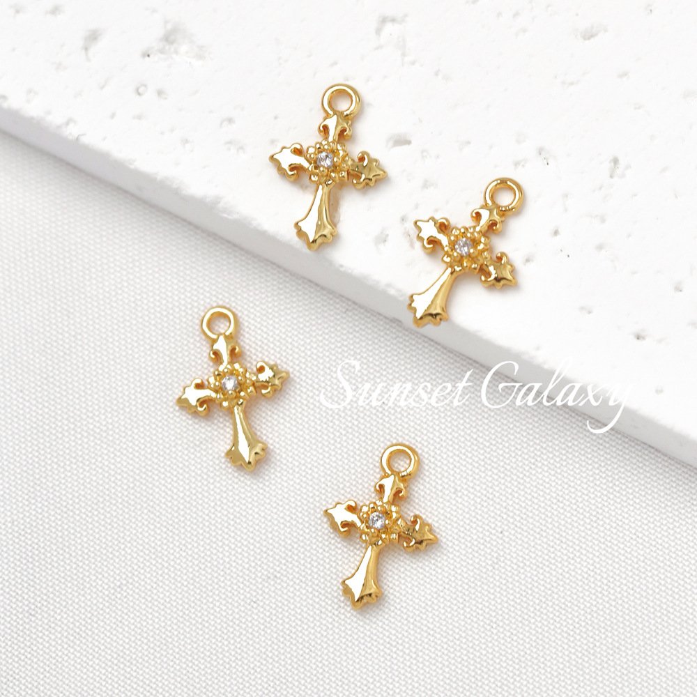 18k gold color retaining micro inlaid zircon cross pendant handmade DIY beaded bracelet necklace jewelry accessories