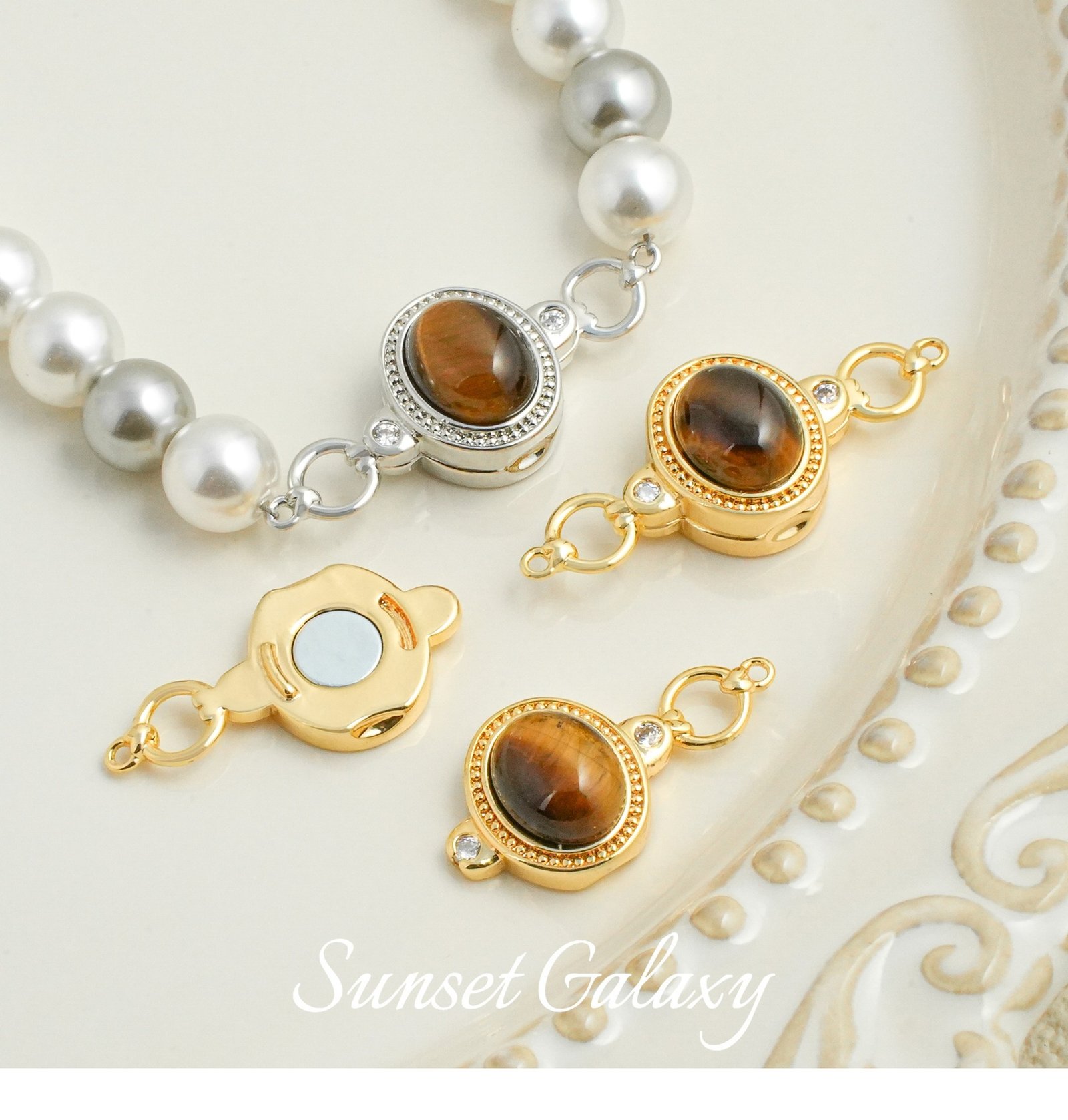 18k gold double rings tiger eye magnetic absorption tail buckle pearl connection buckle handmade diy beaded material bracelet accessories