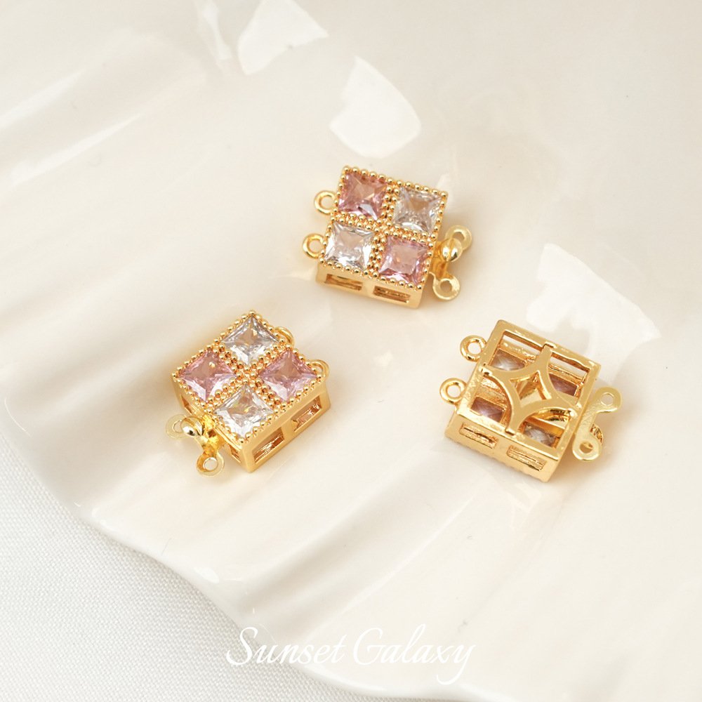 18K Gold-plated Color-preserving Square Inlaid Zirconium Finishing BucKle Latch BucKle diy Bracelet NecKlace Connecting BucKle Jewelry Accessories Material