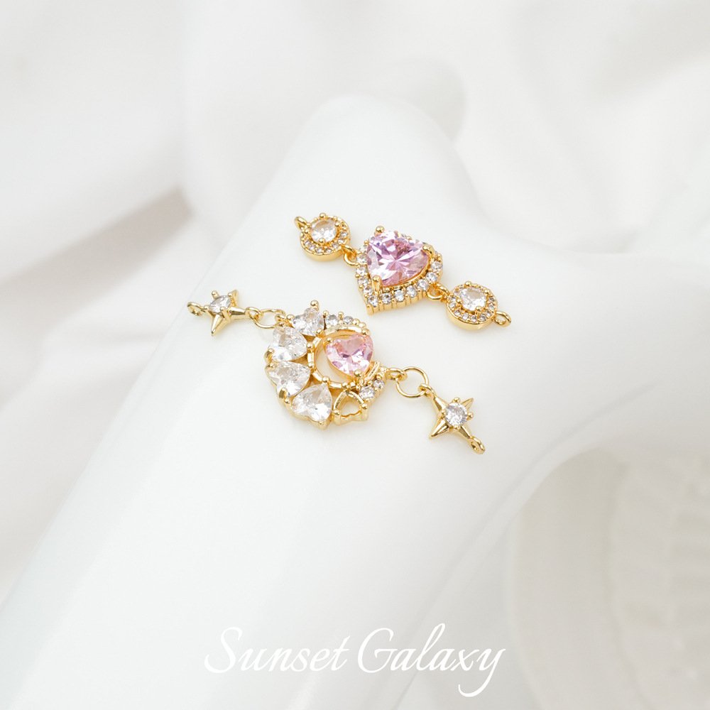 Zirconium moon pendant [18K gold] one/15×18.5mm ,Zirconium star and moon connecting chain [18K gold] one/42.5×15.5mm ,Zirconium love connecting chain [18K gold] one/33.5×12.5mm |