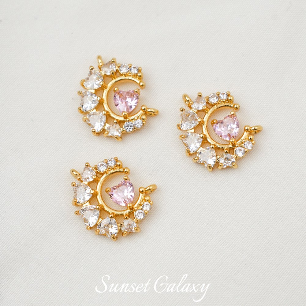 18K Gold-plated Sweet Heart Moon Inlaid with Zirconium Connecting Chain Pendant diy Bracelet NecKlace Pearl Jewelry Accessories Material