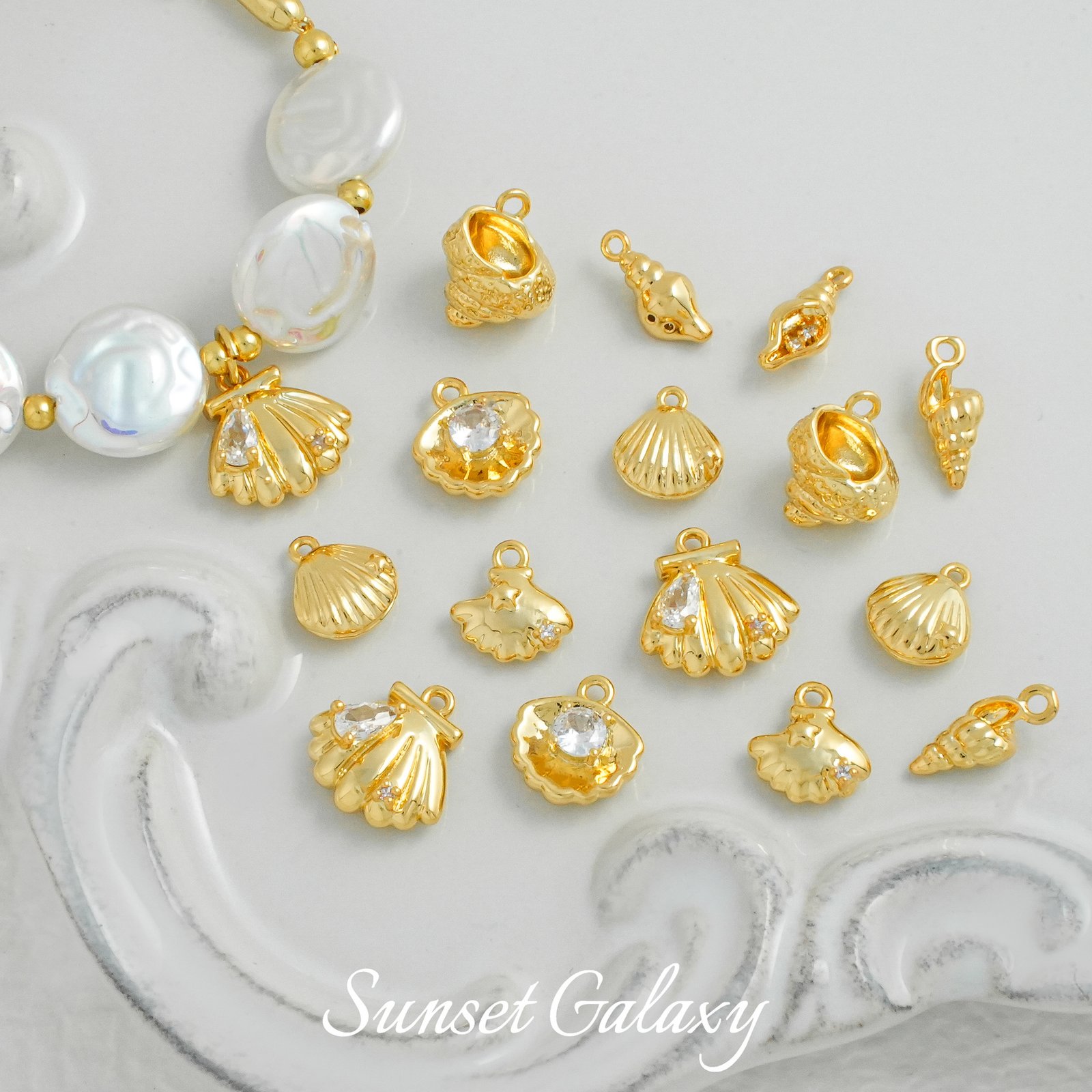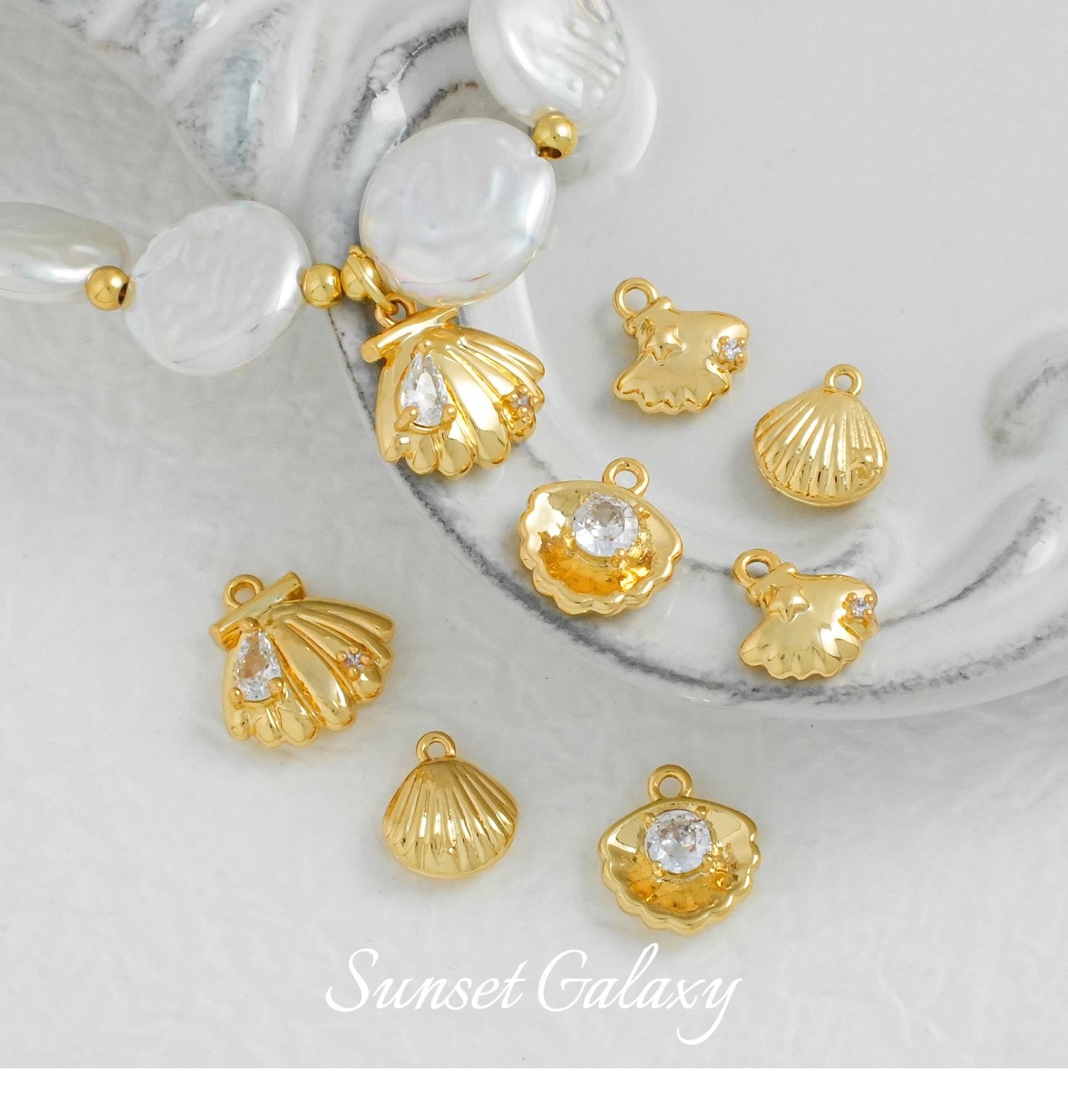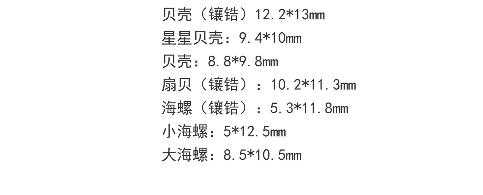 Shell (embedded zirconium) one ,Star shell (set with zirconium) one ,Shell one ,Scallop (embedded zirconium) one ,Conch (with zirconium) one ,Small conch one ,One big conch |