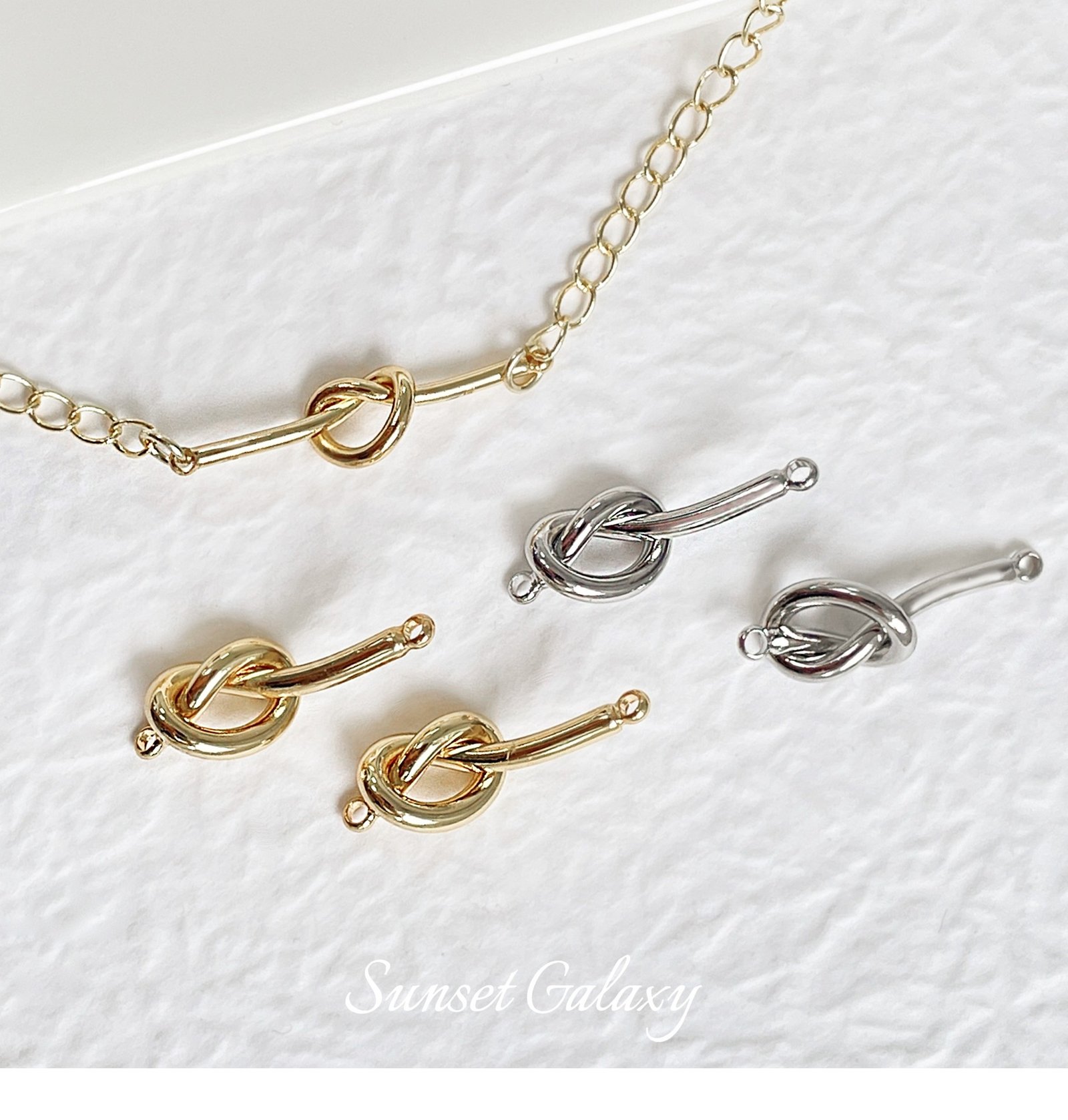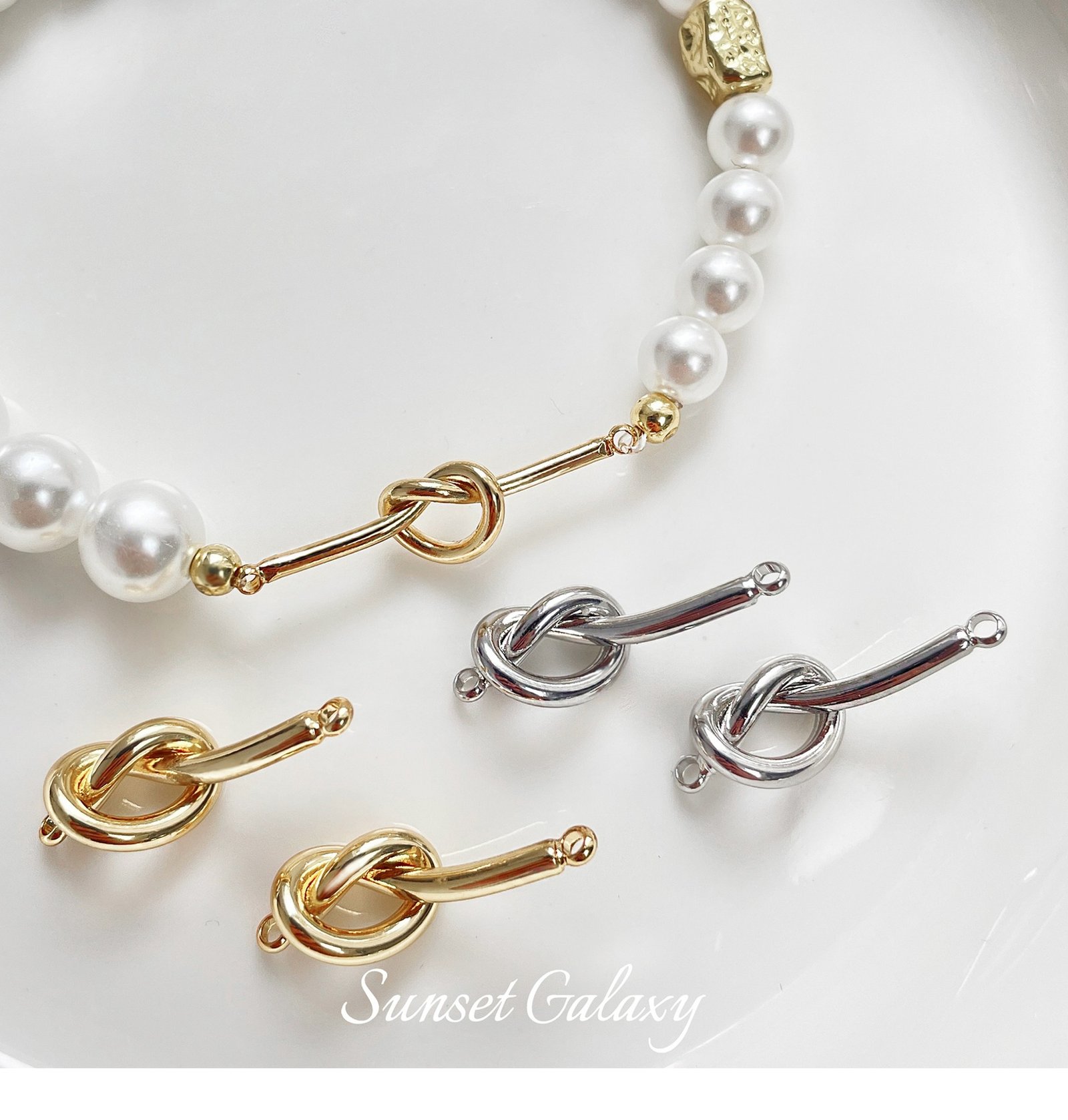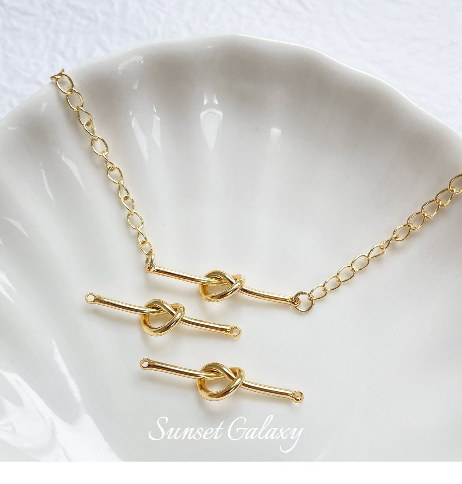 Copper Plated Real Gold Color Preservation Knot Double Hole Pendant Bead Accessories DIY Handmade Bracelet Necklace Bead Jewelry Material