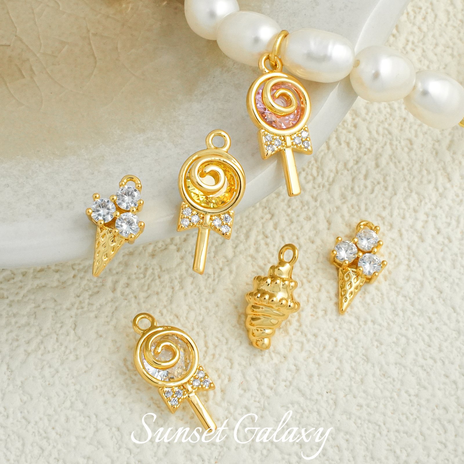 [party] lollipop ice cream zircon pendant 18k color retention handmade diy beaded material bracelet accessories
